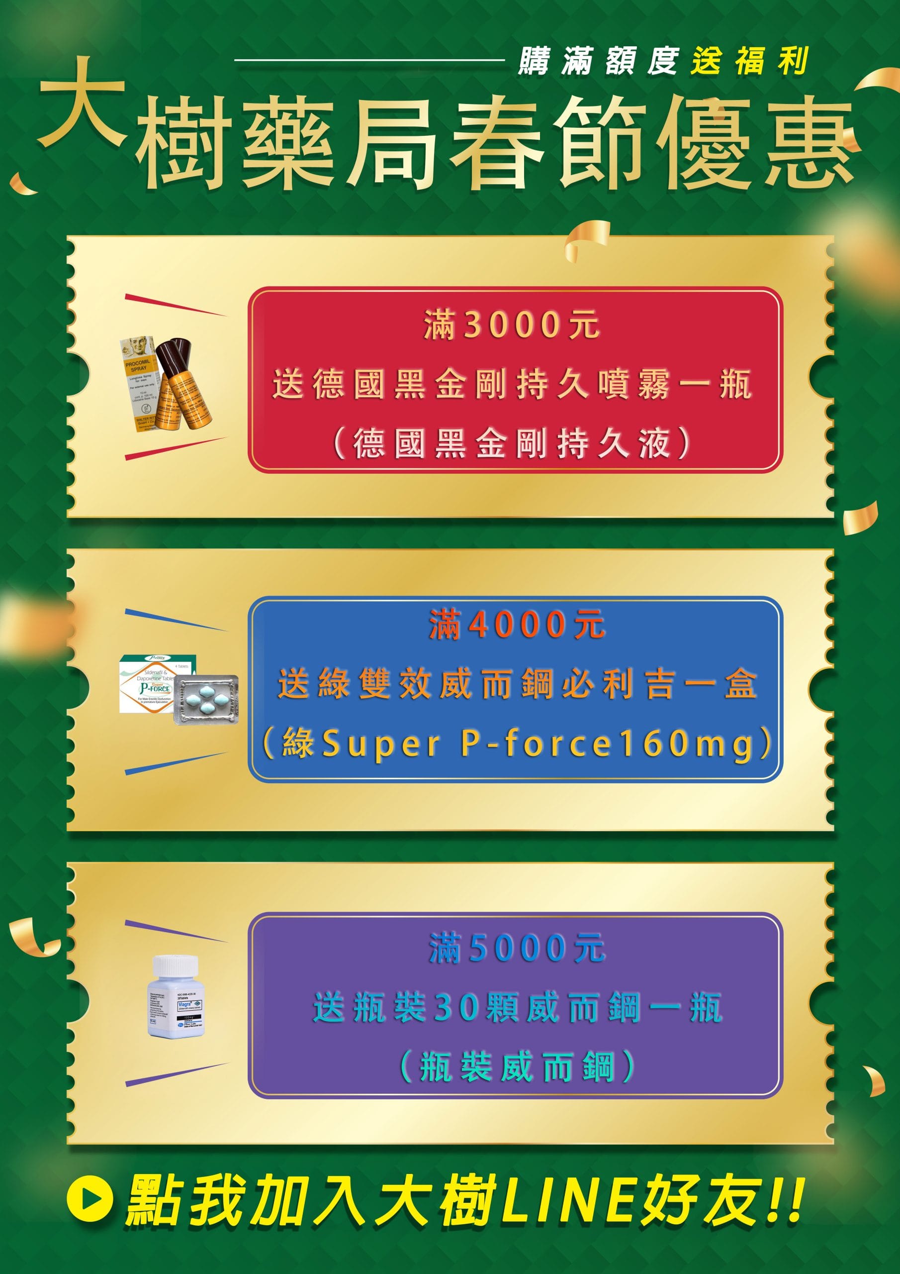 | 滿 5000 元 | 附贈 瓶裝威而鋼(30 錠/瓶) |