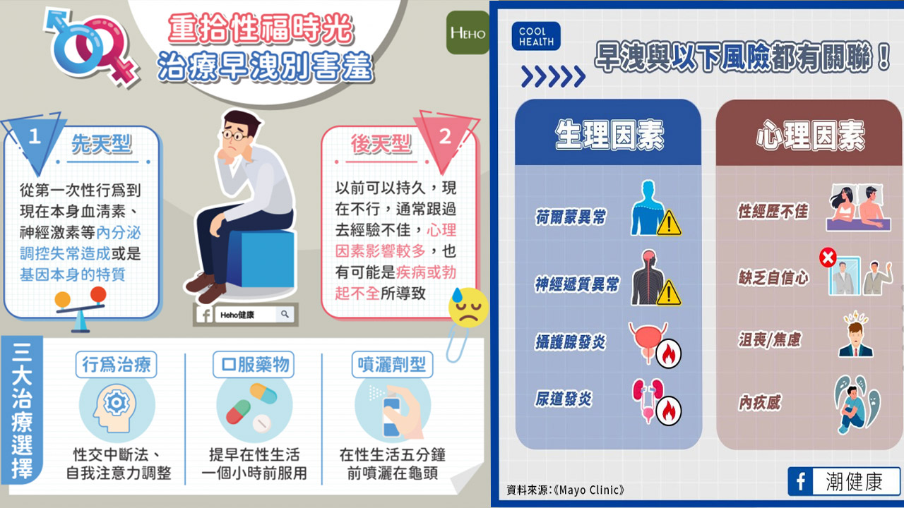 - 續發性早洩:指在一段正常性行為後,因心理、身體因素或疾病引發的早洩,通常可通過解決根本原因來改善。