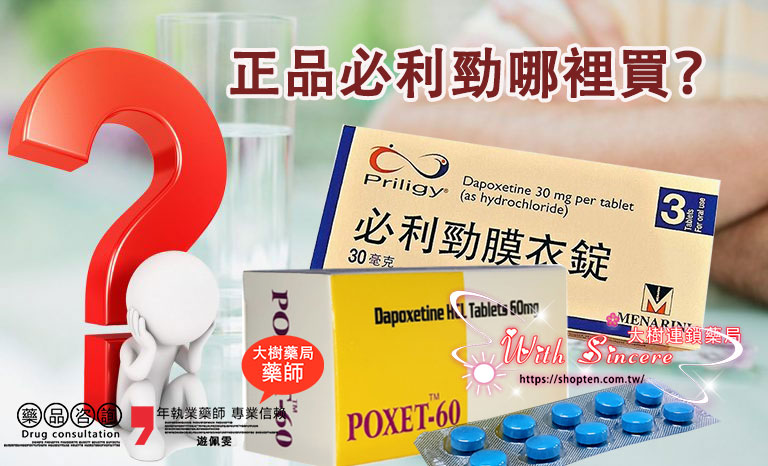 | 原廠 Priligy 30mg / 3錠 | NT$1,200 | 高品質,需處方 | 醫院 / 實體藥局 |