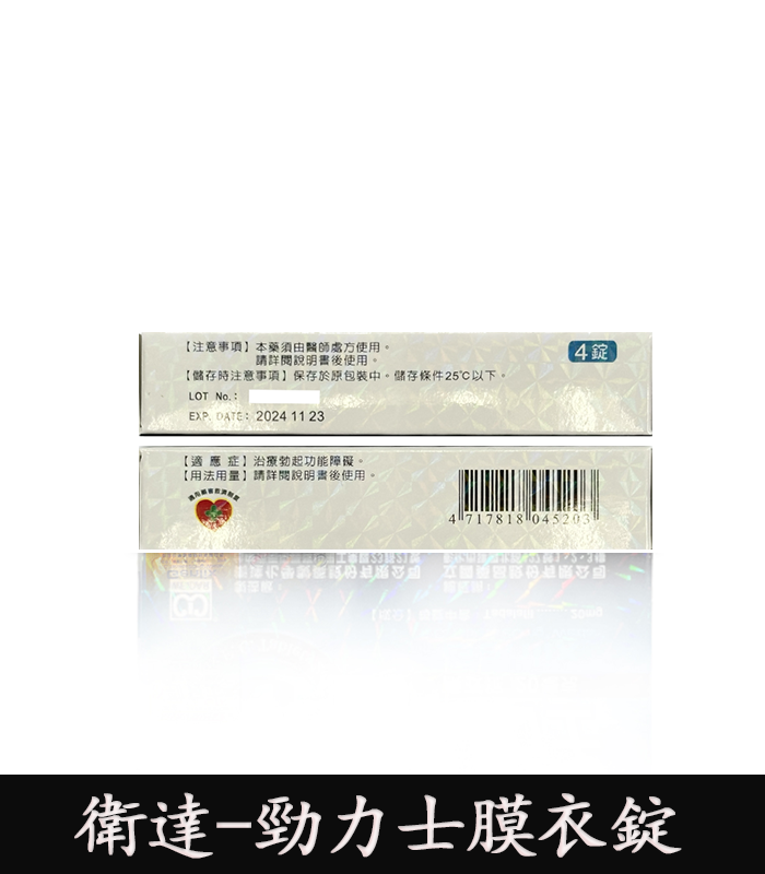 | 用法用量 | 每次 1 顆,建議於性行為前 30~60 分鐘服用,最多每日 1 顆 |