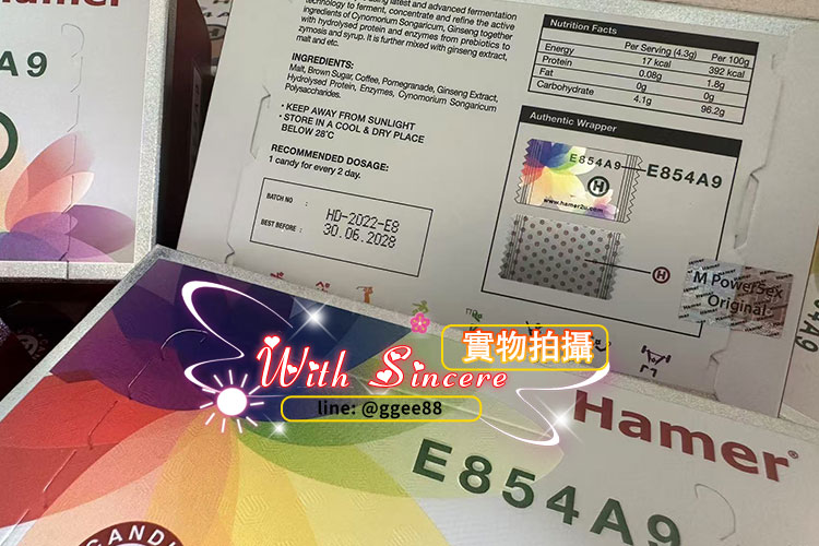 Hamer 彩虹糖(第二代汗馬糖)由 馬來西亞原廠研製,嚴選鎖陽、人參皂苷、石榴多酚、水果酵素等珍貴草本成分,融合 15 年科學研發成果與多項國際安全檢測認證,不含化學刺激物、無西藥成分、無副作用,安全可靠。