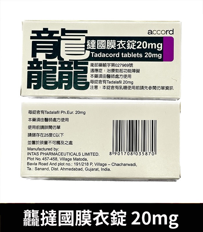 龘撻國膜衣錠 Tadacord 20mg 是針對男性勃起功能障礙的強效助勃藥物,提供快速且穩定的勃起效果,幫助您在性愛中恢復自信,讓每一次親密接觸都更加持久滿足。
