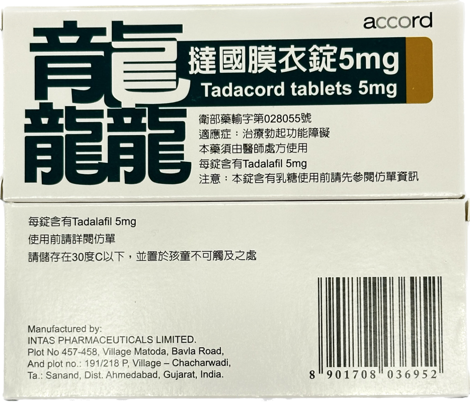 龘撻國 Tadacord 20mg 膜衣錠 (4粒/盒) Tadalafil丨正品保證