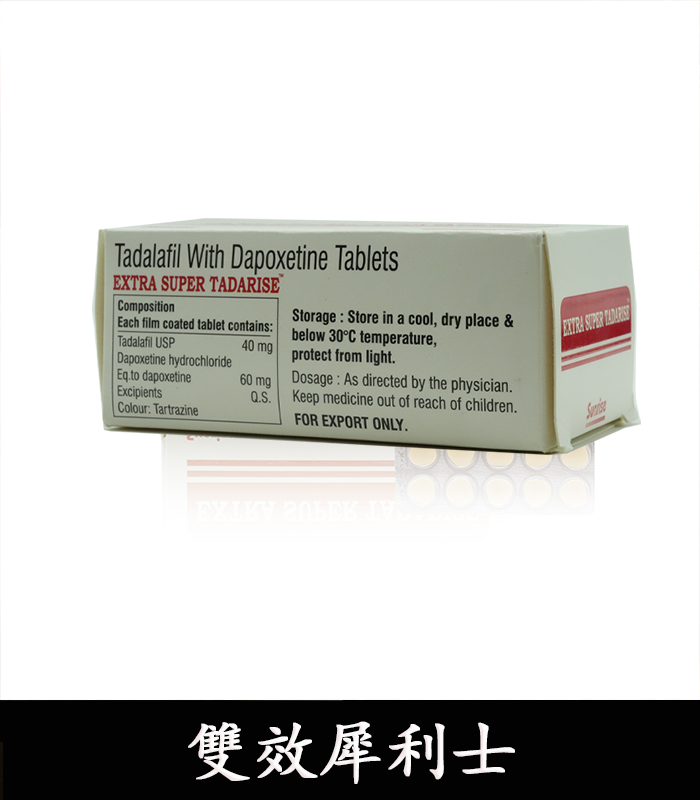 雙效犀利士是用於治療勃起功能障礙和早泄。雙效犀利士混合片有兩種活性成分,他達拉非40mg和達泊西汀60mg。他達拉非可以幫助您勃起更強,而達泊西汀可以幫助您在床上停留更長時間。達泊西汀通過提高激素水平,達到減緩射精的目的。他達拉非通過放松肌肉來治療勃起功能障礙,並允許更多的血液流入陰莖。使得使用者能夠實現更硬的勃起。副作用:少數人會出現輕微頭痛、潮紅、消化不良、鼻塞等。壹般來說,副作用輕微且容易緩解。