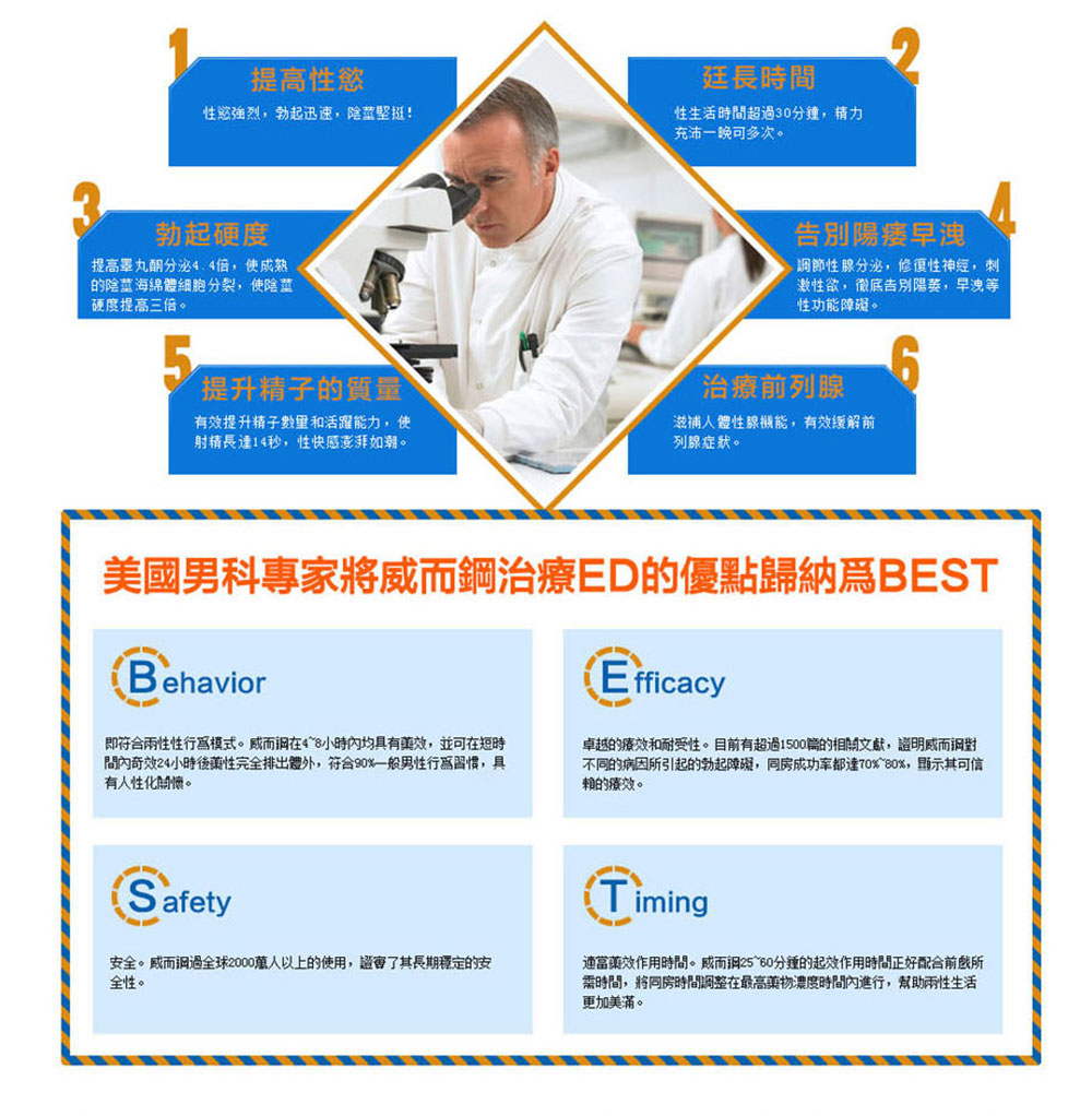威而鋼(Viagra)是全球最知名、最廣泛使用的勃起功能障礙(ED)治療藥物,由輝瑞製藥(Pfizer)研發,成分為西地那非(Sildenafil)。自上市以來,威而鋼已幫助上千萬名男性改善勃起困難、提升性生活品質,堪稱壯陽藥物中的經典代表。不僅起效快、效果穩定,更獲得全球醫界廣泛肯定,是恢復男性自信的首選療法。
